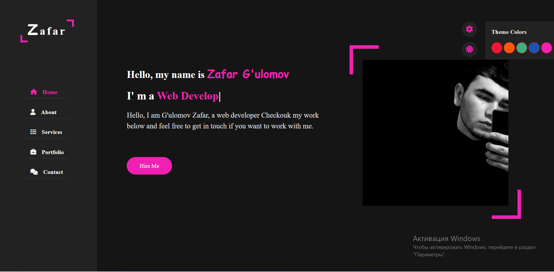 Hello, I am G'ulomov Zafar, a web developer Checkouk my work below and feel free to get in touch if you want to work with me.